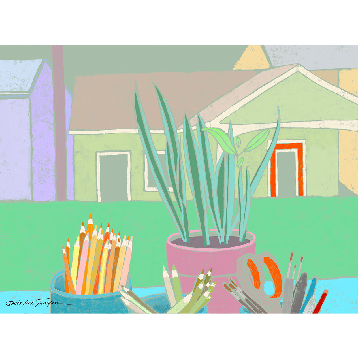 Scene from my window during the time of being inside in 2020. Drawing of local pottery from Quirk-n-Bach Pottery in Eastport Annapolis. Also an homage to the compositions of the painter Giorgio Morandi.